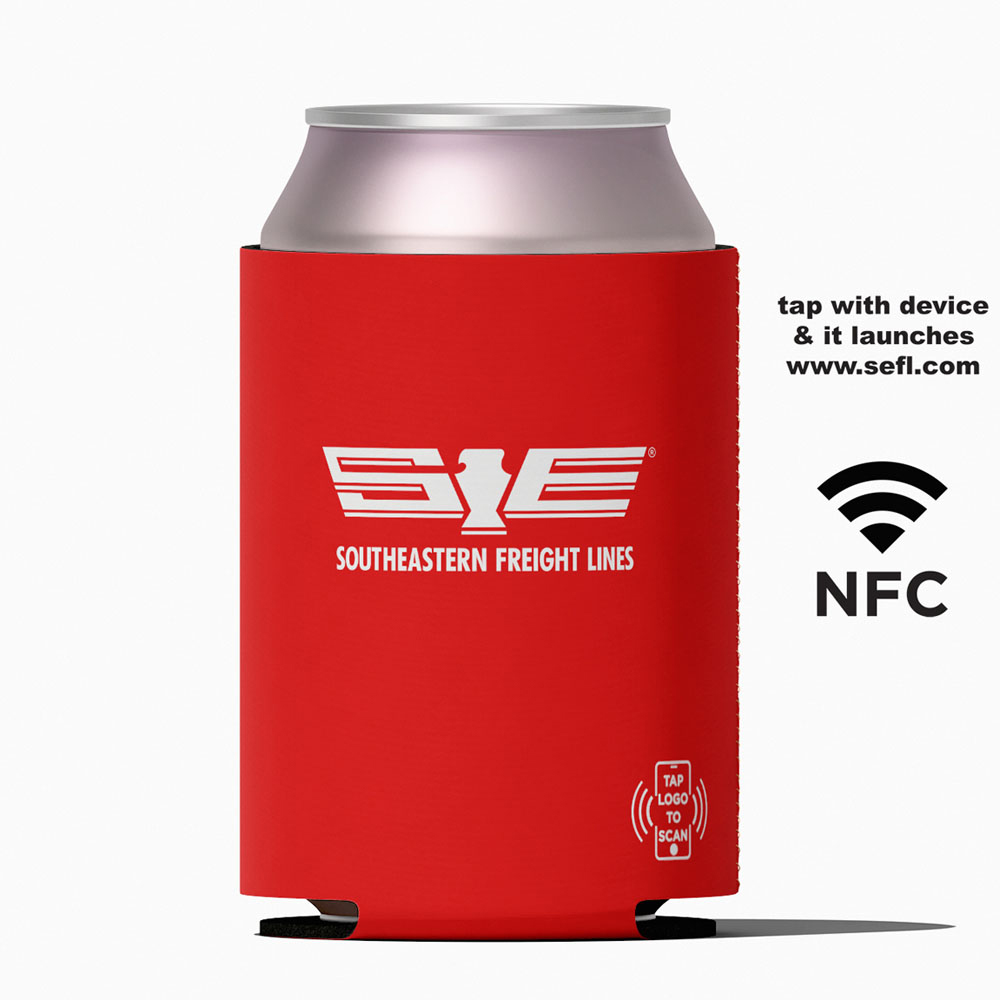 Smart NFC ""Tap to Scan"" technology is built into the SEFL logo. User can tap with a smart phone and directs them to sefl.com. Made in the USA of globally sourced components from 1/8"" thick, high-density open-cell foam, this durable beverage insulator keeps drinks refreshingly cold while seamlessly connecting to smartphones for instant access to SEFL content. The NFC chip is securely sewn into the cooler for long-lasting performance and reliability. ""Tap to Scan' icon is present so recipient recognizes smart capabilities. Dimensions: 3.75"" W x 5.125"" H