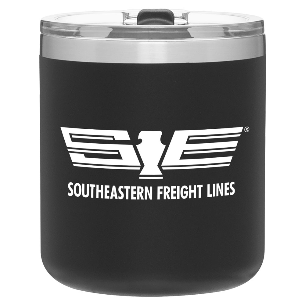 Compact tumbler with 12 oz capacity perfect for coffee, cocktails or any hot/cold beverage. Great item for tailgating, outdoors, camping or everyday sipping. Made from double wall 18/8 stainless steel with copper vacuum insulation, it keeps drinks at the ideal temperature for hours. A clear push-on lid with matching swivel closure offers convenient sipping, while the powder coated finish provides durability and grip in any setting. Includes gift box. Dimensions: 3.8" diameter x 4" high