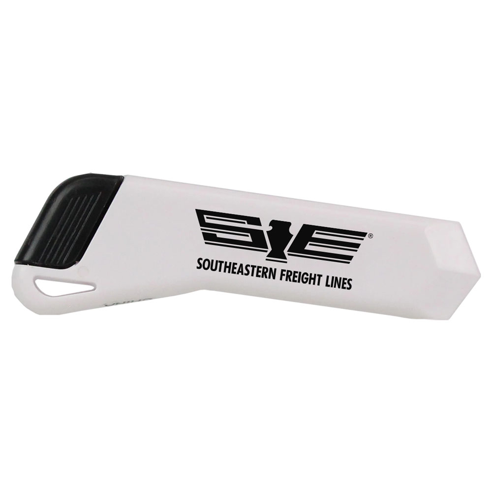 Mini box cutter is only 3" wide, a practical pocket size designed for light-duty tasks. Smooth slide mechanism allows for easy blade retraction when not in use. Contoured grip design follows the natural curve of the hand for a steady hold. Basic manual safety lock helps keep the blade in place during use and storage with proper handling. Built-in hole offers a convenient attachment option for keychains, lanyards or tool belts. Perfect for offices, warehouses, and everyday home use, offering a reliable cutting tool for quick and convenient tasks. Dimensions: 15/16" H x 3" W x 3/8" D
